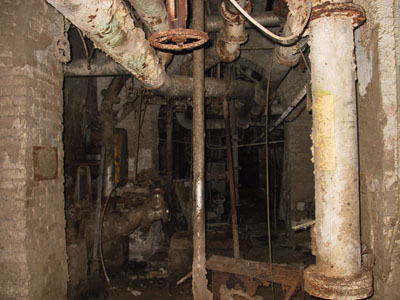 Another look into one of the pits. There sure is a lot of left-over "stuff" in there that once supported the massive paper machine.